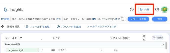Table:クリエイティブレポートの場合は「v_active_insights」を選択