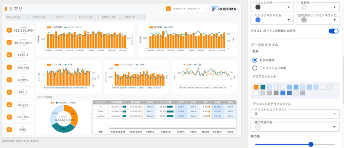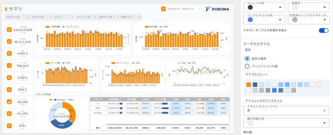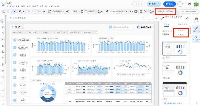 オリジナルLooker Studioを作成するにあたり、それぞれの会社のカラーに変更することができます。